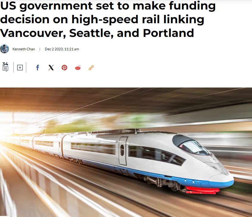 这其中也包括为连接温哥华、西雅图、波特兰的高铁项目(Cascadia High-Speed Rail)提供资金!