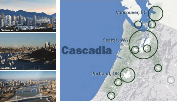 目前来说,Cascadia地区的三个大都市区——温哥华、西雅图、波特兰,共有910万居民和660万个工作岗位。